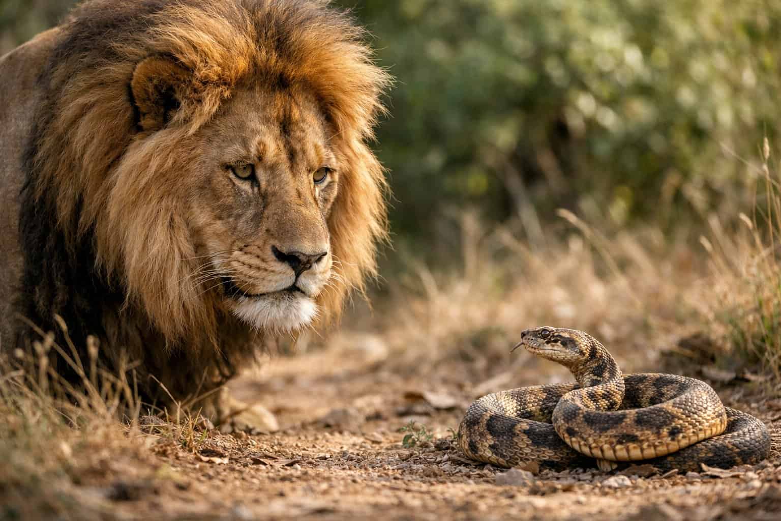 If a lion spots a snake, it’ll often freeze and watch closely. Sometimes, you’ll see a lion creep up, sniff, or even poke with a paw—always from a safe distance.