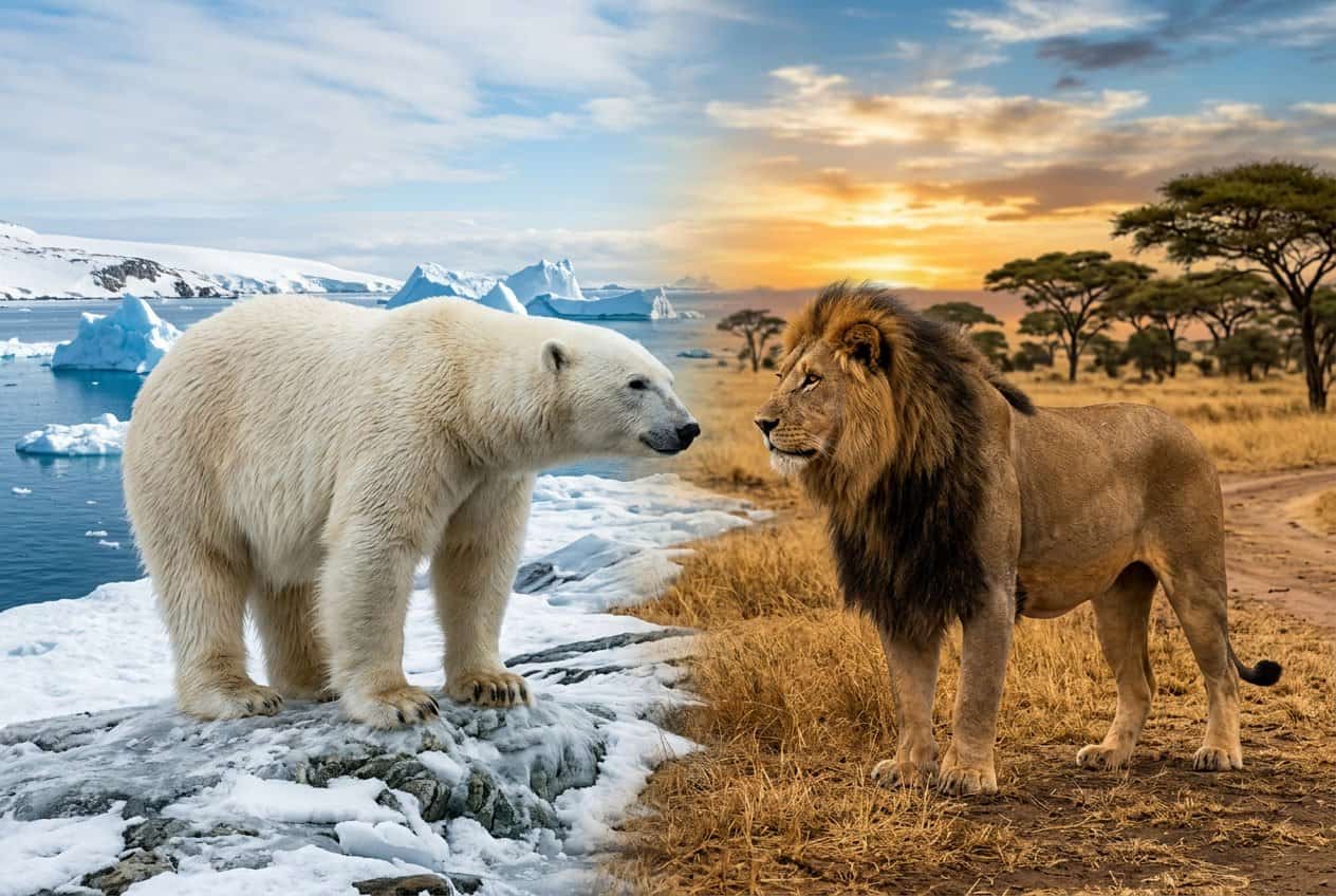 You’ll spot obvious differences in their size, bite force, claws, and overall power. Polar bears bring mass and reach. Lions? They rely on speed and teamwork.