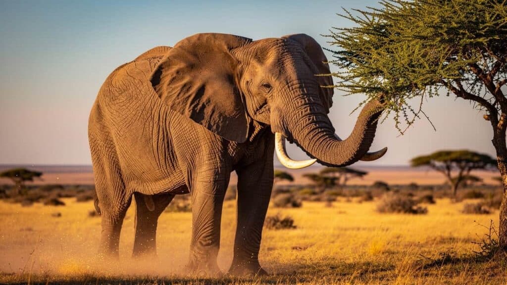 On land, no animal matches the African elephant for sheer weight, and just ten species make up nearly half of all wild mammal biomass on Earth, with elephants being among the most significant contributors to this total. Large males can stand around 13 feet tall at the shoulder and weigh up to 6 tons, which means a single footstep lands with the mass of a small truck. Their long, flexible trunks act as both nose and hand, lifting food, spraying water, and even offering comfort to family members.