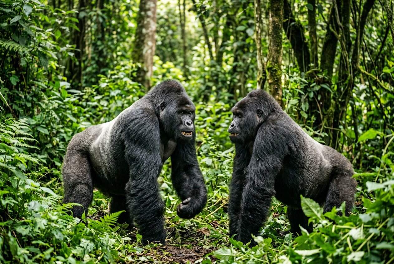 Gorillas don’t hold fixed territories like some predators, but they do defend access to females and prime feeding spots. When groups meet, you’ll usually see loud displays instead of all-out fighting.
