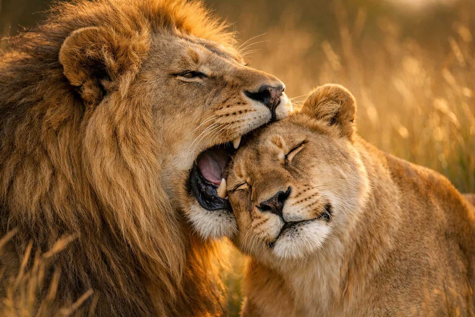Male lions bite the female’s neck to hold her steady, help trigger ovulation, and signal to other lions that he’s in charge.
