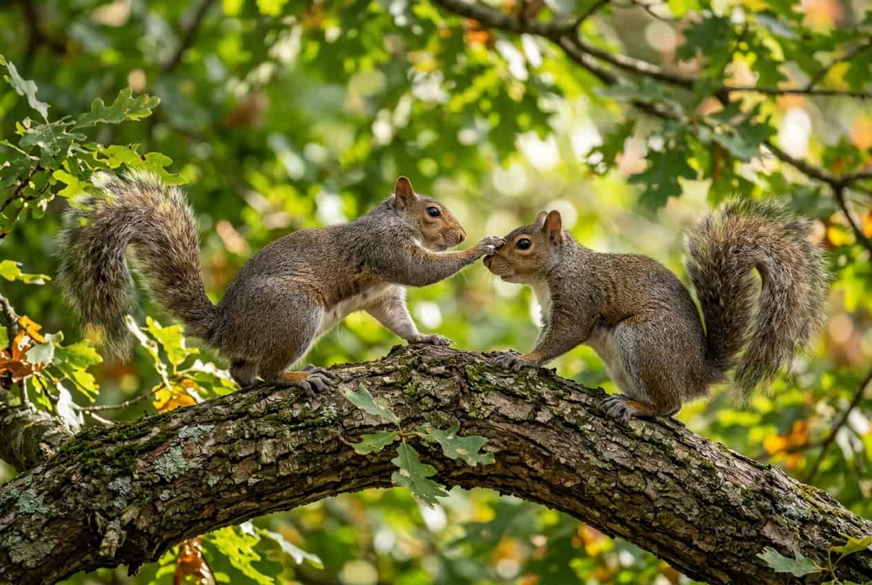 You’ll see squirrels chasing, play-fighting, and darting around for a few main reasons. These actions help the young ones learn, let adults figure out who’s in charge, and sometimes even cover up mating behaviors that look a lot like play.