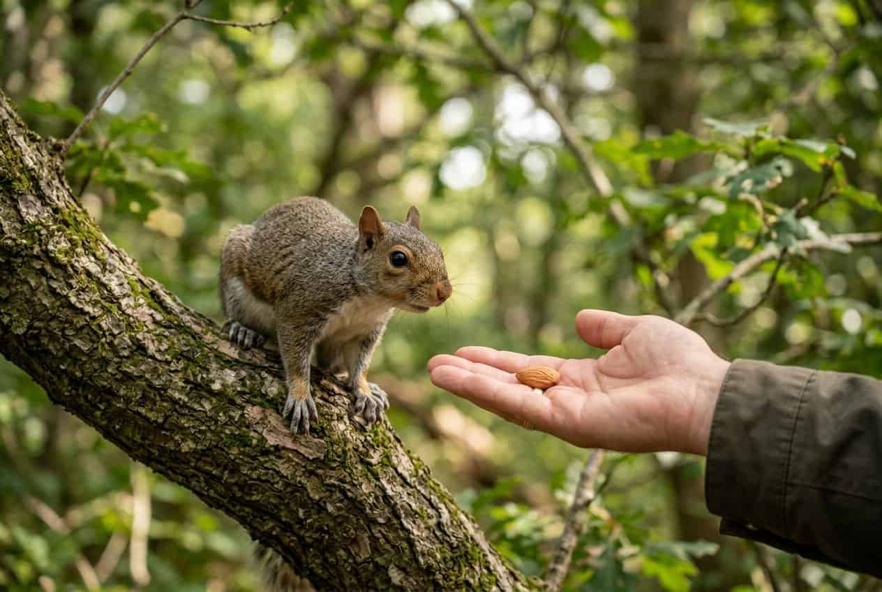 Let’s look at how squirrels act near people. City squirrels don’t behave like forest squirrels, and feeding or handling them changes things.