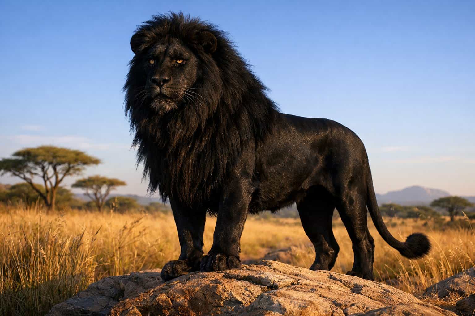 Black-maned lions look dramatic, but their bodies stay tawny, and they don’t have the all-over dark fur that true melanism causes.