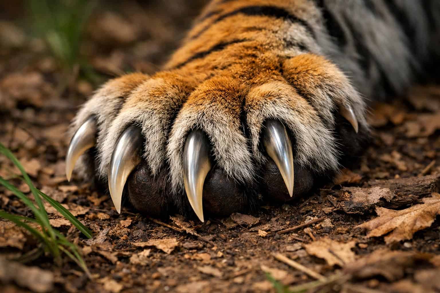 Tiger claws work like those of other Panthera cats, but they’re often bigger because tigers themselves are larger.
