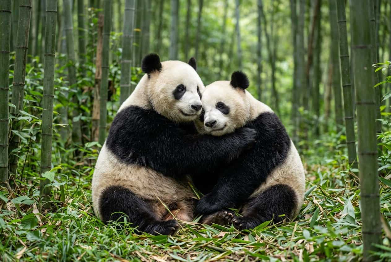 Pandas show affection through things you can actually watch or hear. They use body language, sounds, smells, and touch to bond with mates, cubs, and close companions.