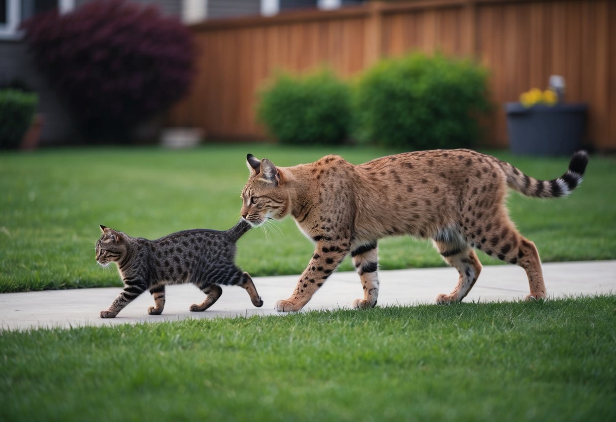 It’s important not to run or turn your back on the animal. Instead, maintain a firm stance until the bobcat moves away. If it appears aggressive or does not retreat, follow the steps for dealing with aggressive behavior in the next section.