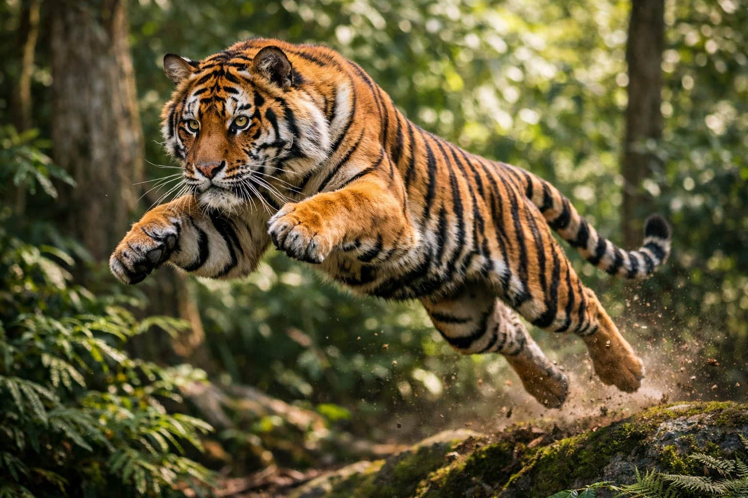 The tail isn’t just for looks—it acts as a counterweight. When a tiger jumps, its tail swings to balance out body rotation. This helps the tiger stay steady in midair and steer if needed.