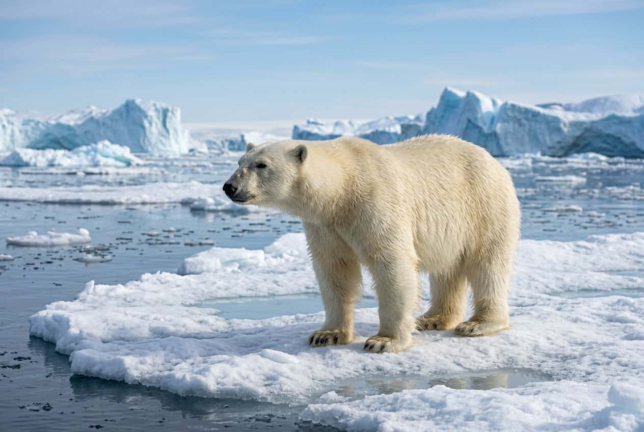 When sea ice disappears, polar bears lose their main hunting ground. They use ice to catch ringed seals and other prey; less ice means a shorter hunting season and less time to build up fat for summer.