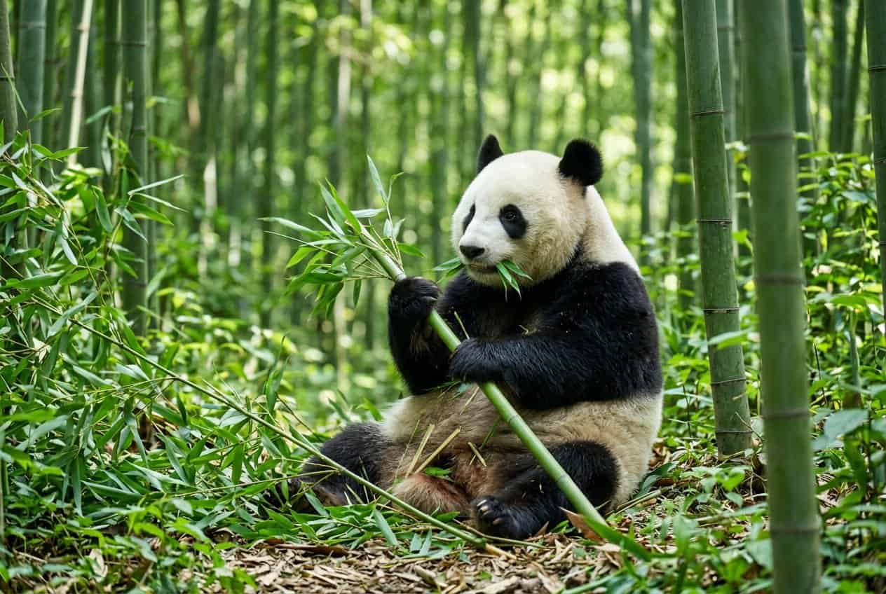 Bamboo makes up almost all of a giant panda’s calories. An adult panda can eat 20–40 kg of bamboo every day just to get enough energy.
