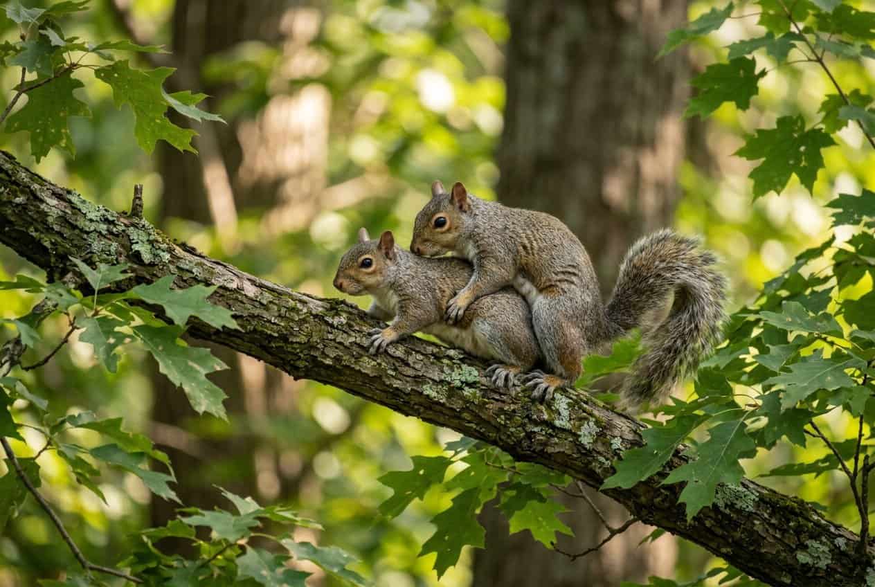 If you watch squirrels during breeding season, you’ll notice chases, loud calls, and quick matings. Squirrels often chase and compete for a fertile female, and mating usually lasts under 30 seconds. Females sometimes mate with multiple males.