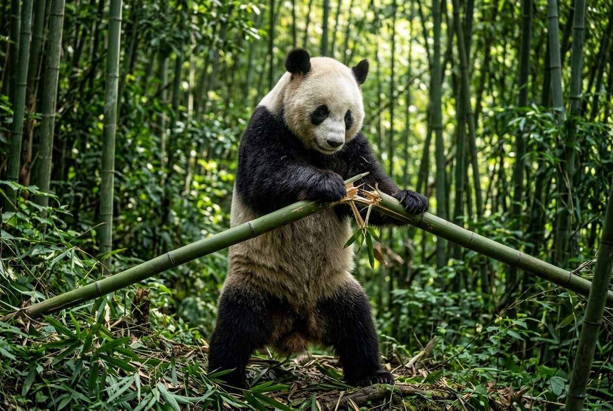 All of this comes from evolution. The giant panda (Ailuropoda melanoleuca) adapted to a bamboo diet, so you get this odd but effective mix of strength and specialization.