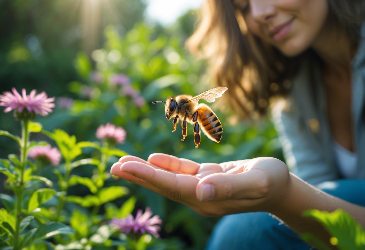 This moment might inspire you to start over or make a change. Just like bees help plants bloom, their visit can stand for your own growth or a new beginning.