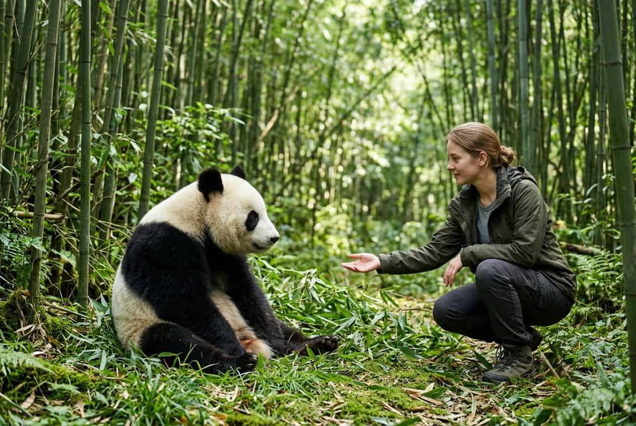 Wild pandas stay away from people and stick to foraging alone. Places like Chengdu arrange encounters with safe distances in mind; sometimes, centers have allowed very limited contact with cubs under strict rules.