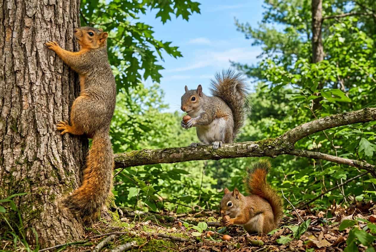 Their behavior shifts with the seasons. They breed in spring and fall, and you’ll notice more food-hoarding in autumn. For more details on backyard species and where they live, check out this practical guide to squirrels in the United States.