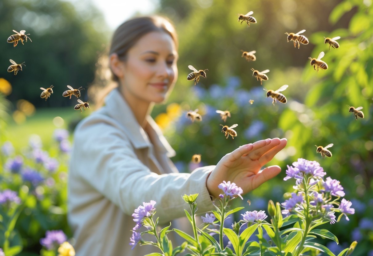 You might spot them flying quickly in small groups, searching for food or water. These bees defend a larger area around their nests, so it’s smart to keep your distance.