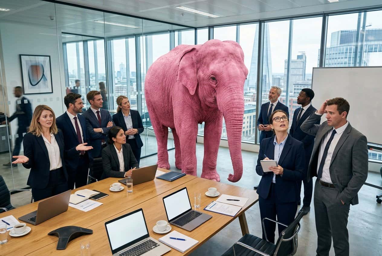 You might use “pink elephant in the room” when the obvious thing is also kind of weird or embarrassing. The regular “elephant in the room” just means there’s a big, clear problem nobody wants to talk about. The pink one? It adds this layer of strangeness, or maybe makes the whole thing feel a bit more awkward.