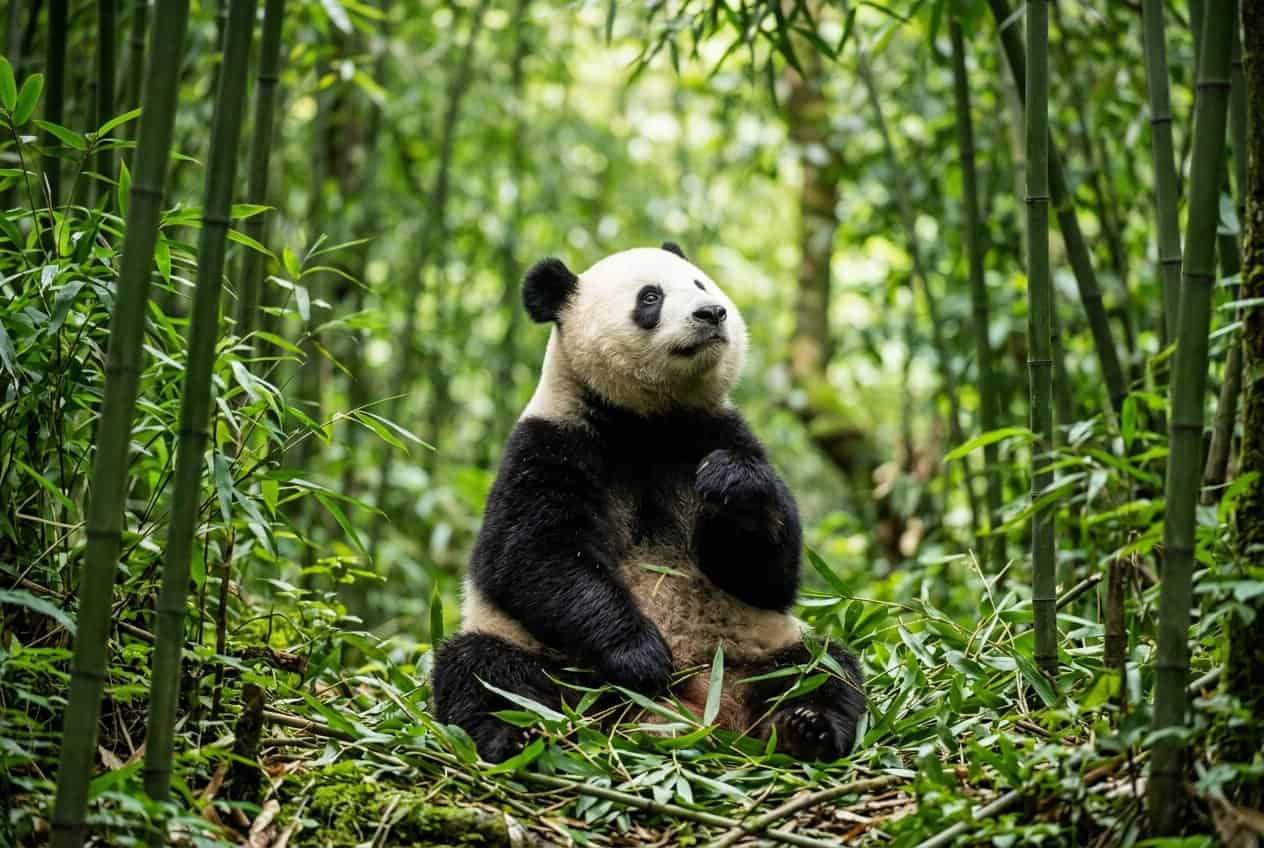 Pandas depend more on their senses than on having a huge thinking brain. So, they’re great at survival tasks—finding bamboo, remembering routes, and using their paws to eat.