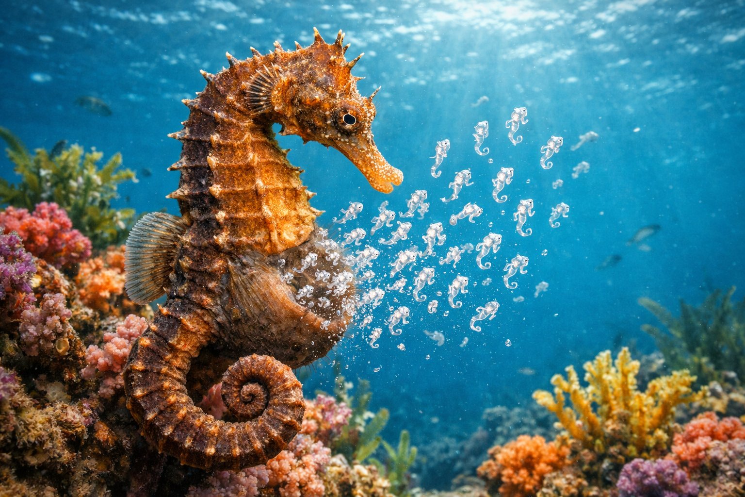 Maybe you’ve heard that female seahorses just make eggs, but honestly, there’s a lot more going on. Female seahorses (genus Hippocampus) create and transfer nutrient-packed eggs to the male’s brood pouch, pick their mates through courtship, and help keep pair bonds strong—which actually boosts the odds for their babies.