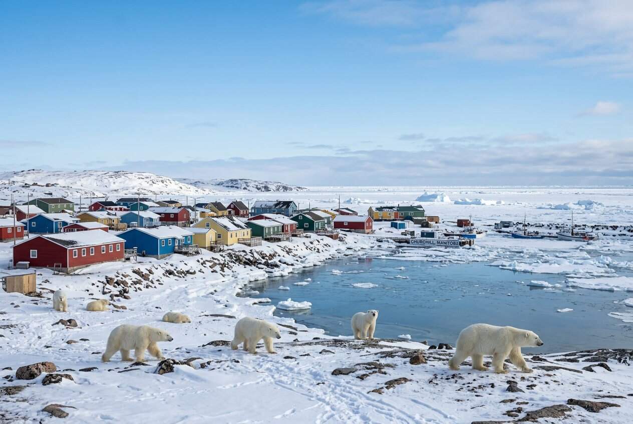 Churchill sits on the edge of Hudson Bay in Manitoba, Canada. It calls itself the “Polar Bear Capital of the World,” and honestly, it’s hard to argue.
