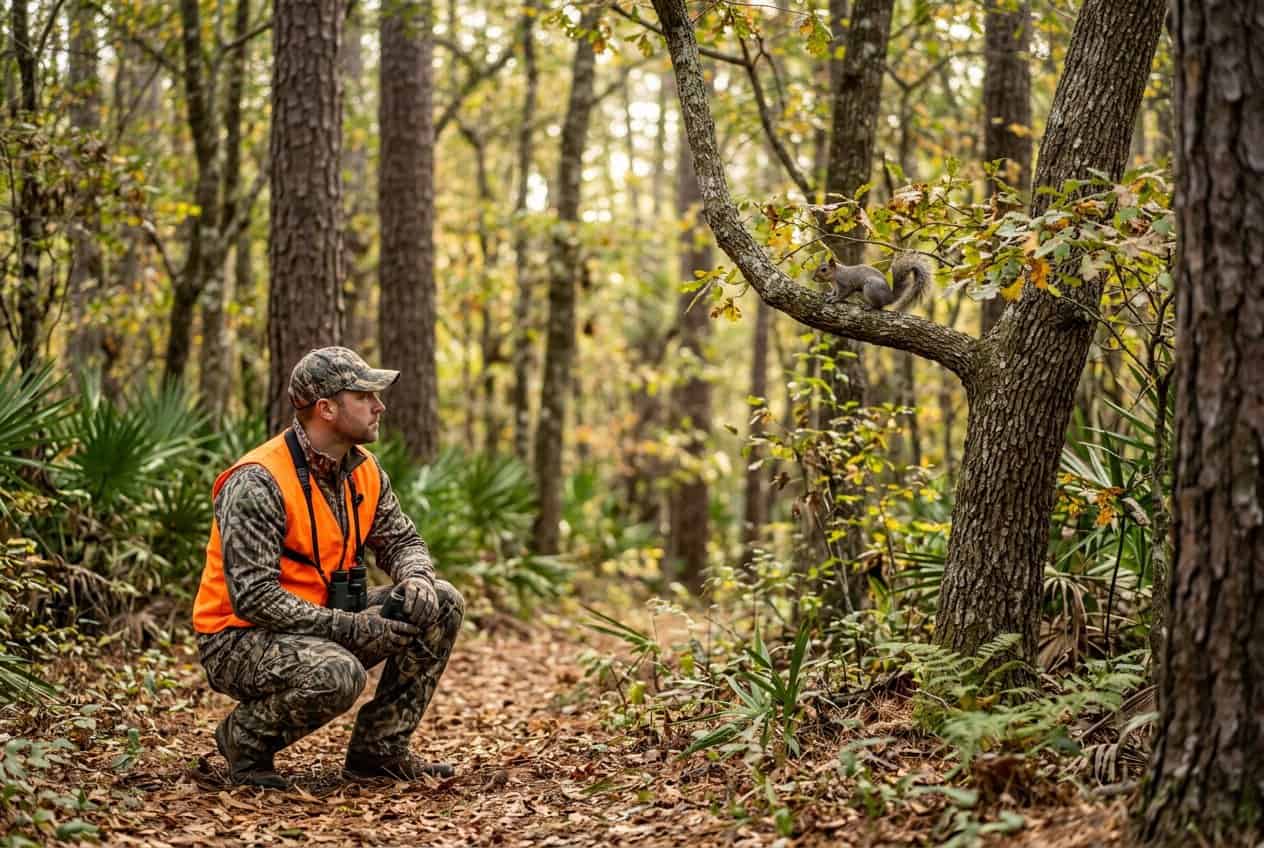 Ocala National Forest and Apalachicola National Forest both have big hardwood hammocks and creek bottoms—great squirrel habitat. Hunt on state WMAs that mix pine flatwoods and hardwood stands.