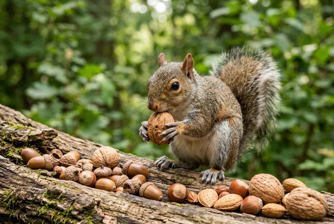 You can safely offer many common nuts, but some are honestly much better for squirrel health than others. Give squirrels unsalted, raw or roasted almonds, hazelnuts, walnuts, acorns, and shelled mixed nuts in moderation. Avoid highly processed or high-phosphorus nuts like pine nuts, cashews, and dry roasted peanuts. This keeps their diet closer to what they’d find in nature and lowers the risk of throwing their nutrients out of balance.