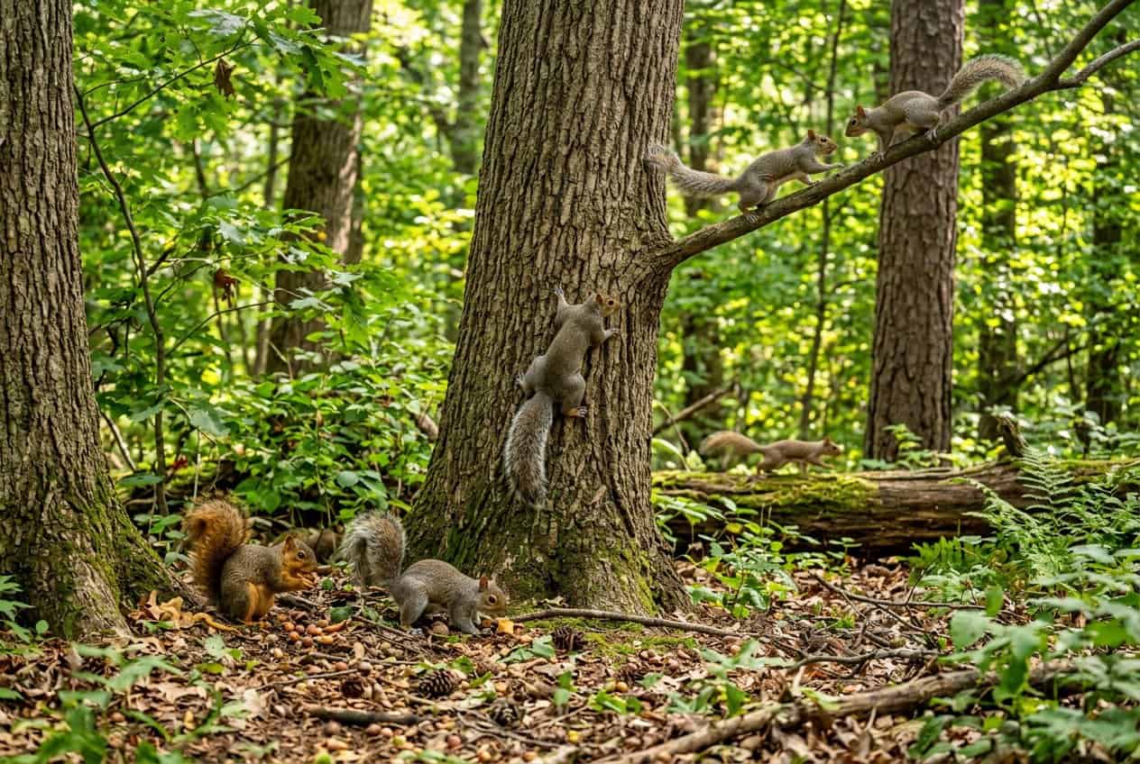 If there’s a lot of oak, hickory, or pine, expect even more squirrels.