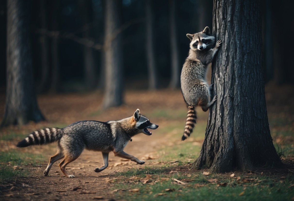 - Coyotes often hunt alone or in small packs. They are adaptable and can chase down raccoons in different environments.