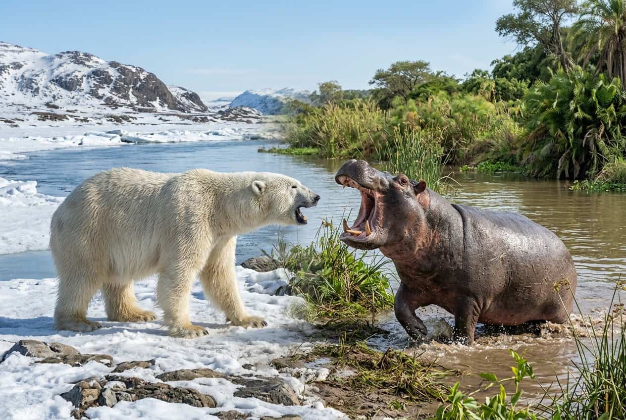 Alright, let’s get to the point: a hippopotamus would almost always win against a polar bear in a straight-up fight. The hippo’s size, ridiculously thick skin, and that jaw strength just put it way ahead, even before you start thinking about how they’d actually square off on land or in water.
